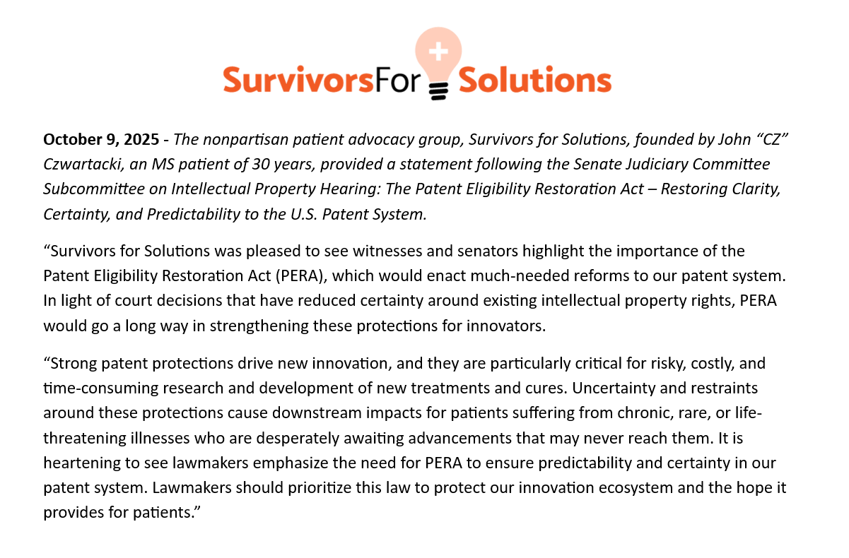 SFS Statement on the Recent Senate Judiciary Committee Subcommittee on IP Hearing on PERA Oct 9 Written By THG Digital THG Digital